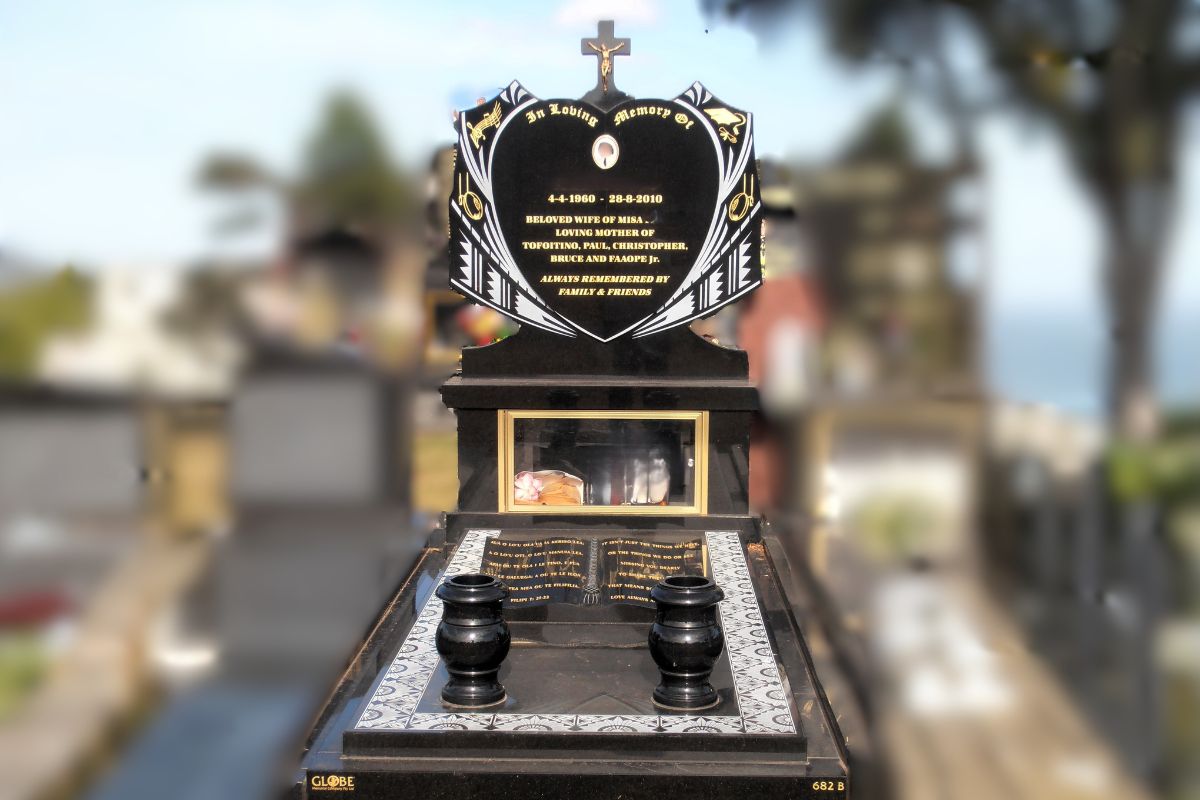 A recent memorial we completed for an Islander family (pictured above) brought together everything that makes custom work meaningful, combining symbolic, cultural and personal elements into one design. This family wanted to reflect their loved one’s life, faith and heritage equally. We included a verse to honour his Christian beliefs and added both the Holy Cross and Crucifix to acknowledge his devotion. Tribal banding was placed on the ledger and headstone to represent his family’s ancestors and the traditions that meant so much to him.